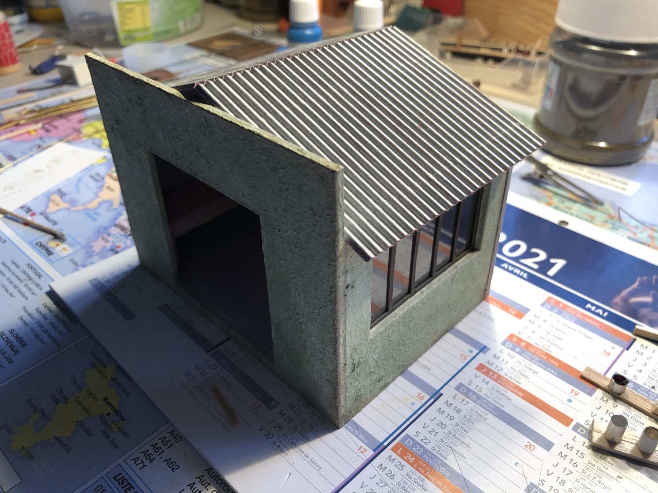 Et la suite avec quelques bricoles en balsa pour aménager l’atelier.