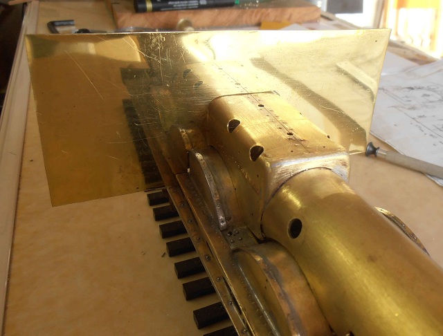 Aujourd'hui, poursuite de l'habillage de la machine. Les grosses pièces à fabriquer commencent à se faire rares. J'attaque donc la cabine avec pas mal de détourage à réaliser. Quelques coups de limes plus tard j'arrive à ce résultat :
