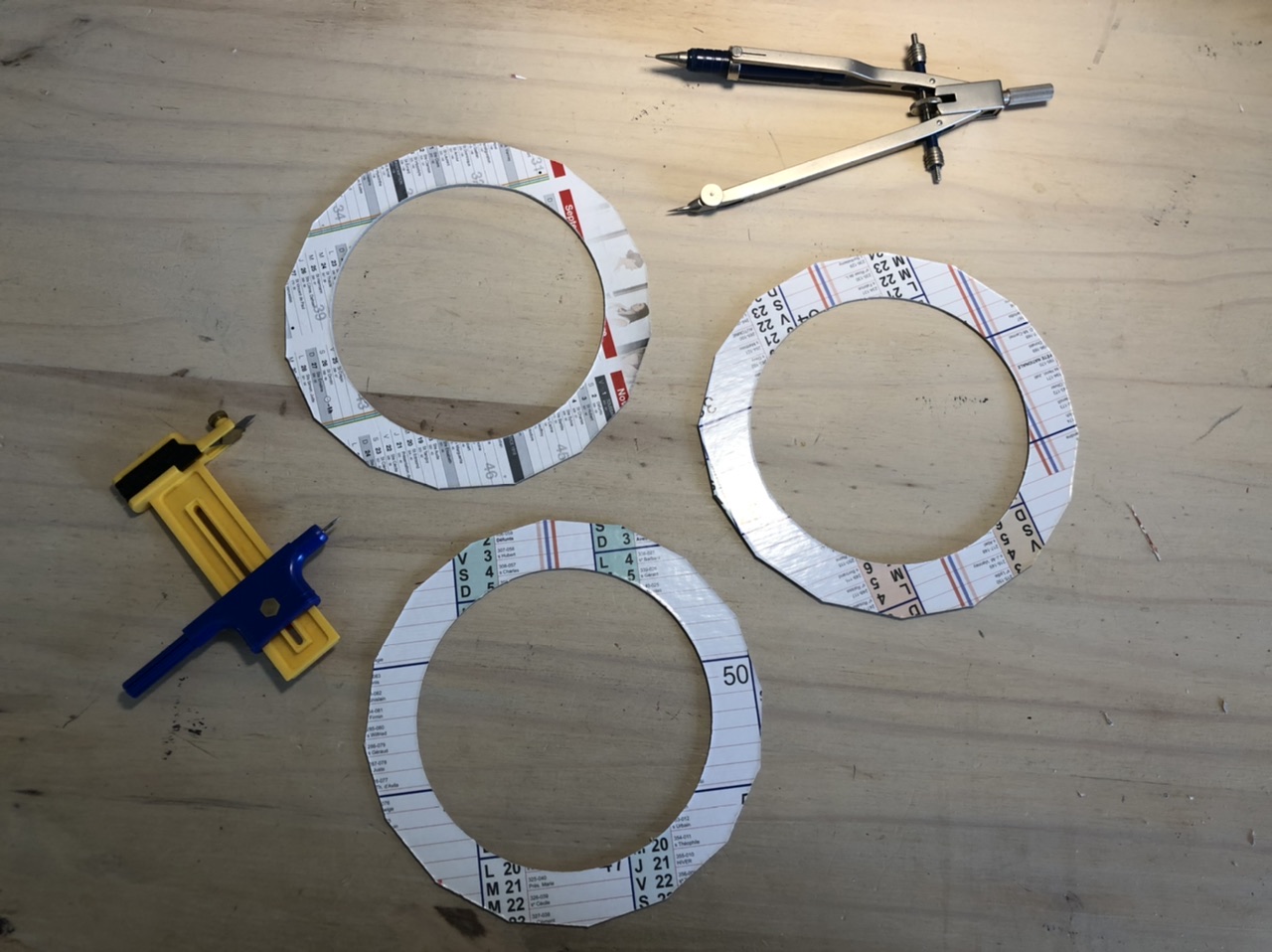 Pour le bardage en bois je commence par faire 3 disques découpés avec 16 segments qui vont déterminer les pans du bardage.