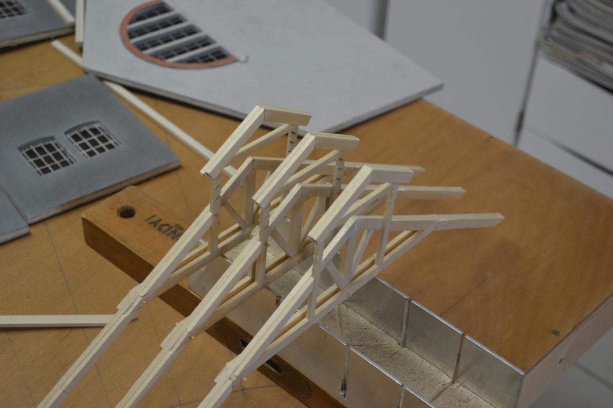 Un travail vraiment pas facile à réaliser, la charpente du lanterneau.