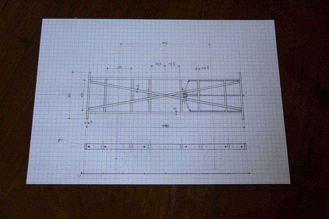 Ce matin j'ai fait le plan du premier châssis d'une une voiture de 1ère classe à 4 compartiments.