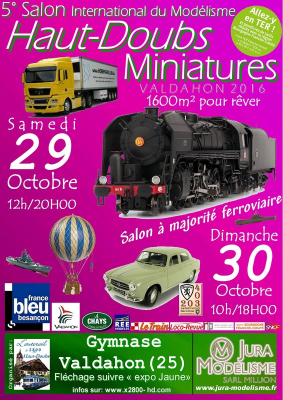 La SNCF étant partenaire du Salon Haut-Doubs Miniatures, une tarification spéciale est disponible: http://www.ter.sncf.com/franche-comte/o ... er/visiter. Vous trouverez d'avantage d'informations pour organiser votre voyage sur le site http://www.ter.sncf.com/franche-comte/l ... miniatures.
