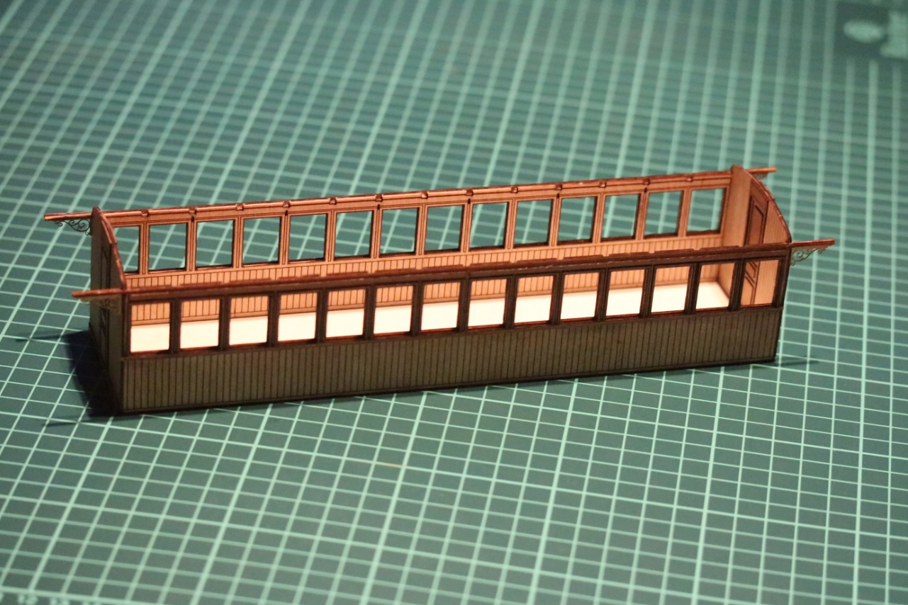 Quelques vues à venir du montage de la caisse de la voiture de seconde classe . la caisse est en bois découpé laser.....Le châssis est en laiton photogravé mais vu la température dans l'atelier.....le montage se fera plus tard et comme il y a 3 voitures , ce sera un travail en série