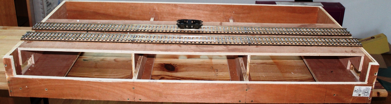 Bien qu’ayant adopté la norme NEM 962f pour la réalisation des modules, si la profondeur est bien de 600 mm et l’implantation de la double voie est au strict respect des cotes indiquées, j’ai choisi pour la largeur mon propre "modulo" : celui-ci correspond à la longueur d’une semelle Decapod elle-même représentant un coupon de 18 mètres en réel (414 mm à l’échelle) ; plus pragmatique pour la mise en œuvre de tels produits, puisque tel est mon choix d'origine et le restera pour l'ensemble. Le précédent module possède donc une largeur de 3 "semelles", celui-ci ne fait qu’une "semelle" de largeur.