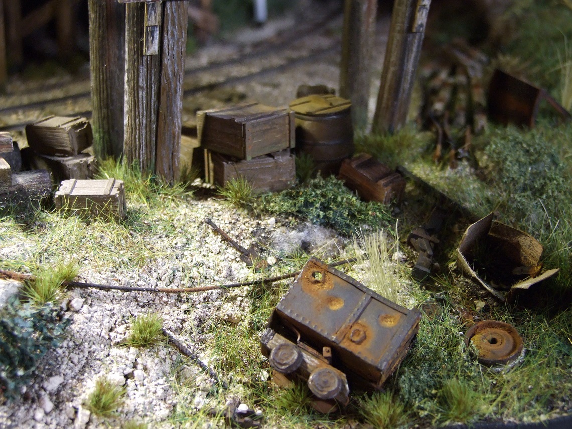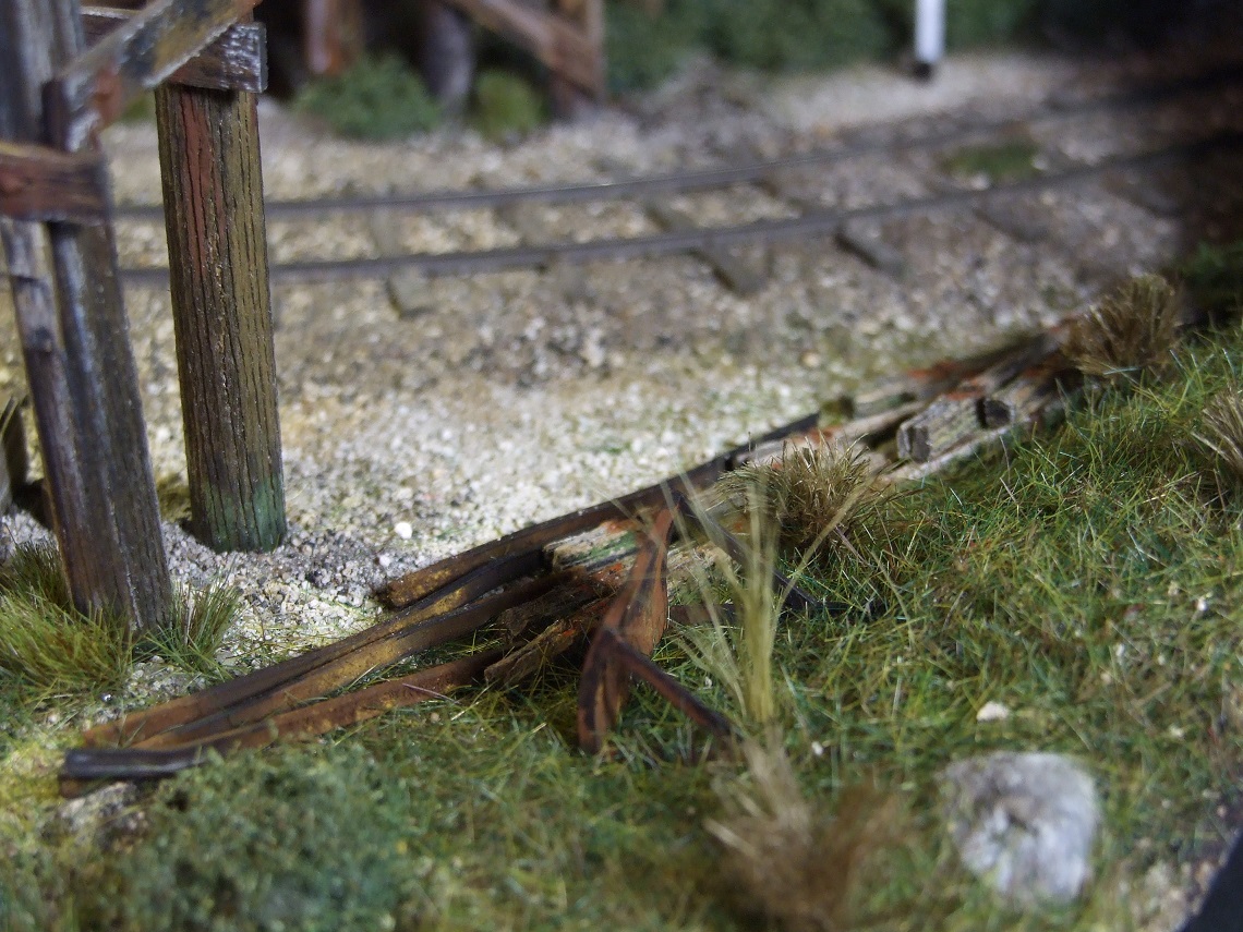 une couleur uniforme, idem pour le ballast des voies, & encore plus pour les champs, les fossés, et tout ce que représente