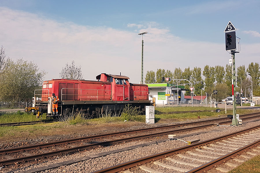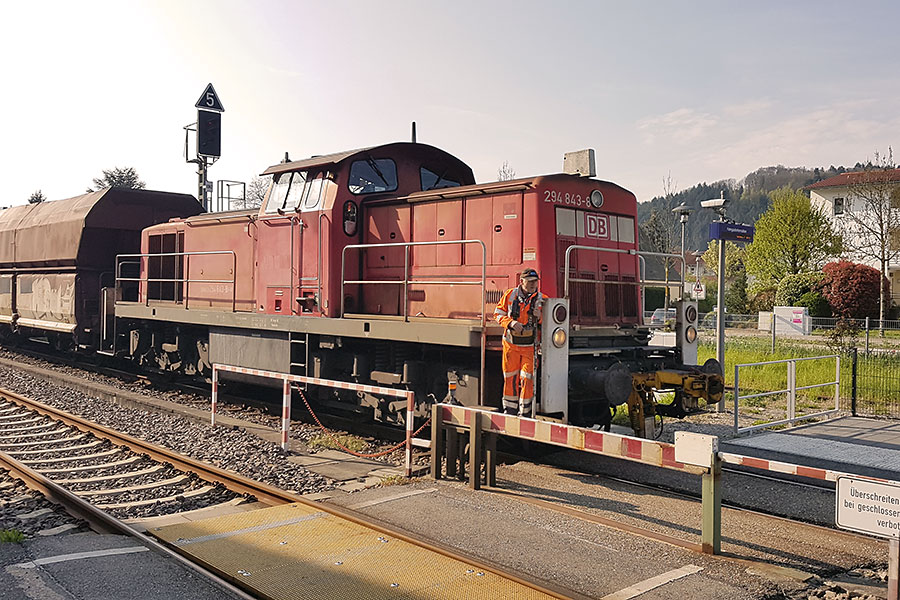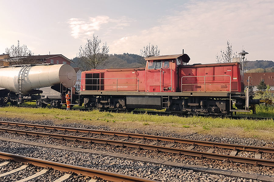 Chaque matin, une locomotive diesel de type V90 récupère quelques wagons de marchandises. La V90 294 843-8, locomotive diesel télécommandée, dispose aussi d'un attelage dit de manœuvre (rangierkupplung en allemand) que l'agent télécommande. Chaque manœuvre nécessite la fermeture d'un ou des deux passages à niveau créant potentiellement un bouchon.