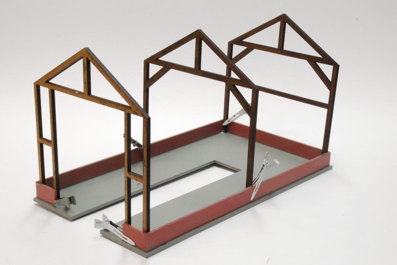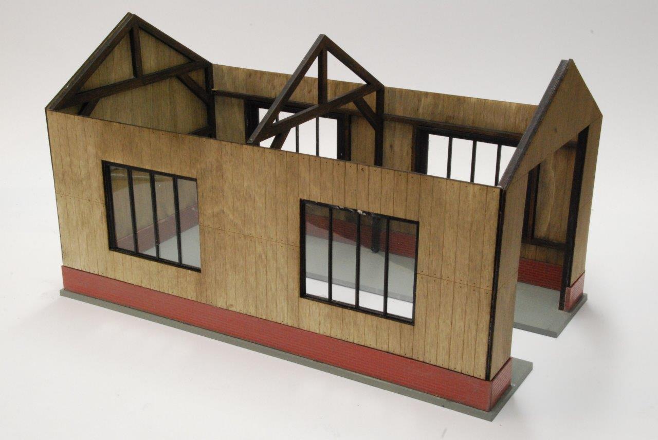 J'ai dessiné et réalisé cette remise avec une graveuse laser avant de me séparer d'ABE, il était donc facile d'avoir accès à la matière et l'outillage. D'abord un soubassement en briques gravé dans du plastique.