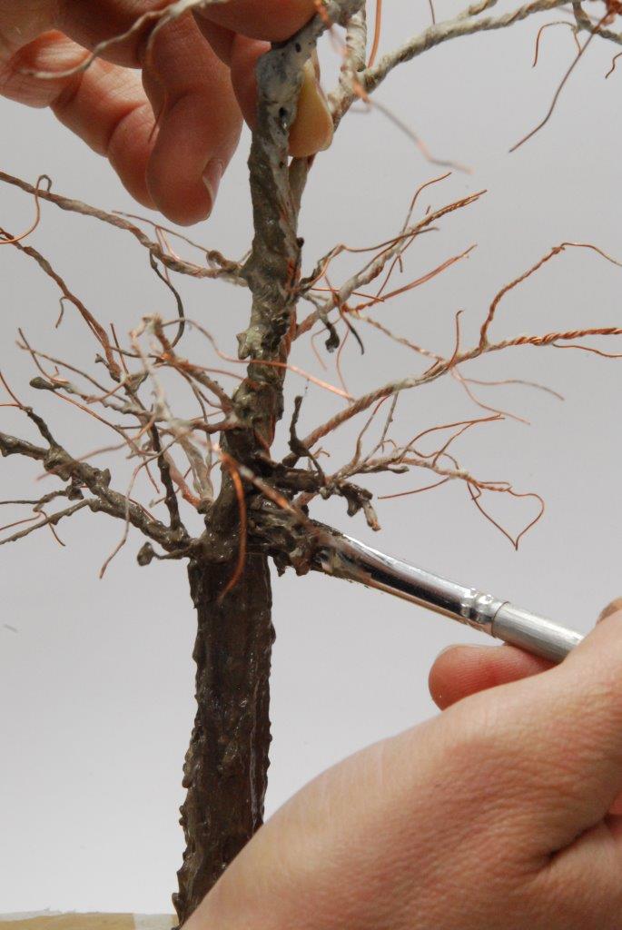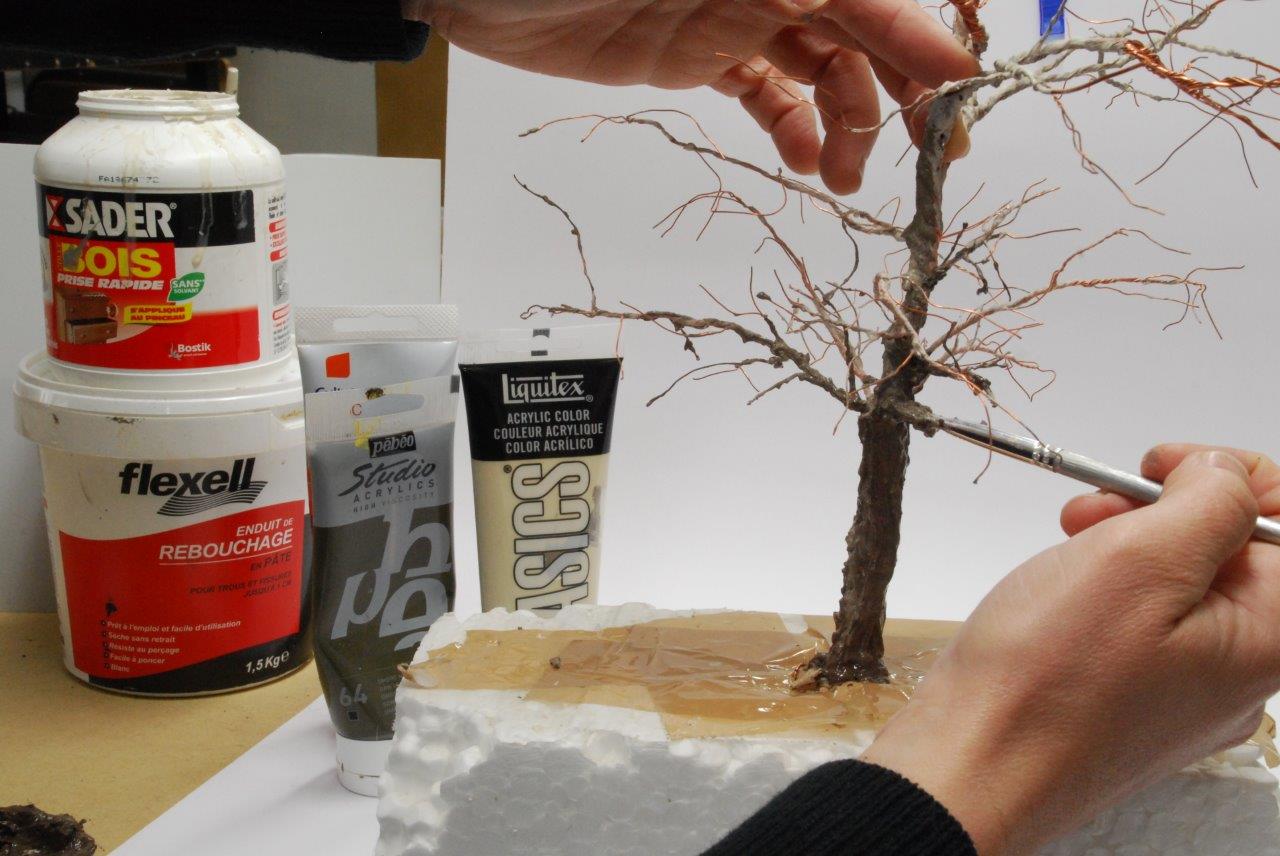 L'arbre prend forme, de l'enduit teinté est appliqué sur toute la structure.