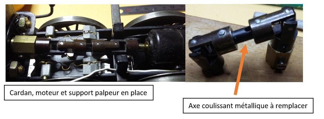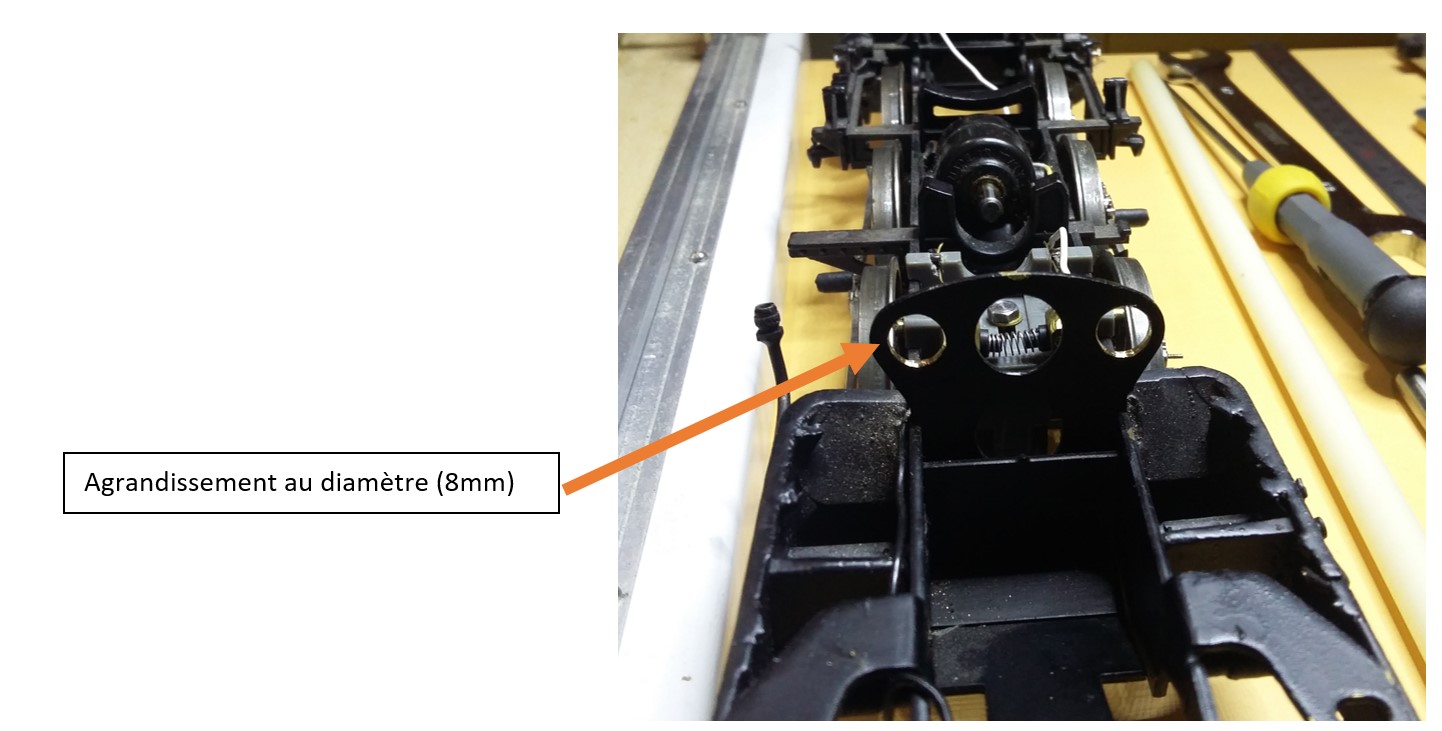 Petite précision supplémentaire : la barre d'attelage d'origine est en matière plastique. Si une partie métallique de la machine rentre en contact avec une partie métallique du tender, il y a court circuit. Une solution est de mettre les deux châssis à la même polarité.