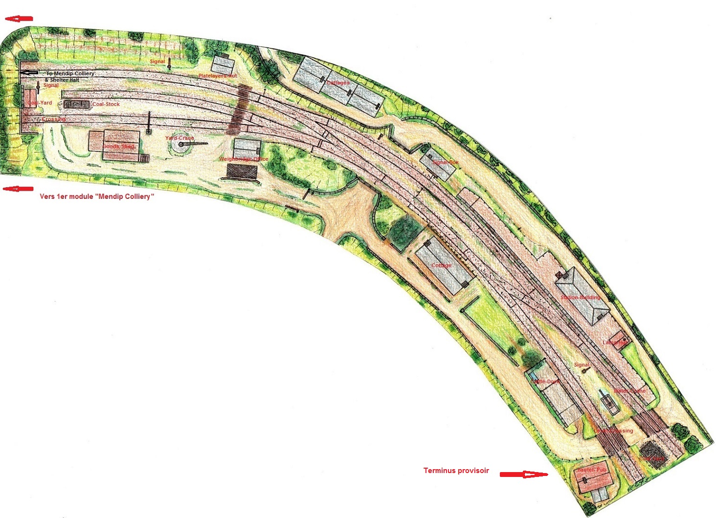 au lieu de 50cm initialement prévu). Pour que ses deux voies se raccordent au deuxième module de la station; j'aurais à décaler ces deux voies