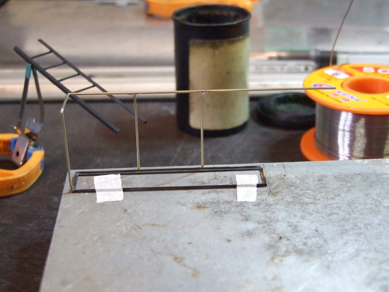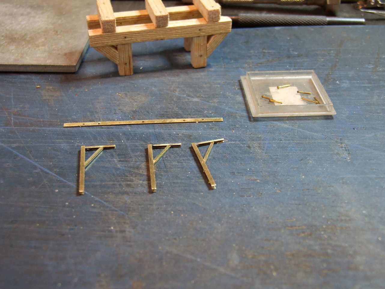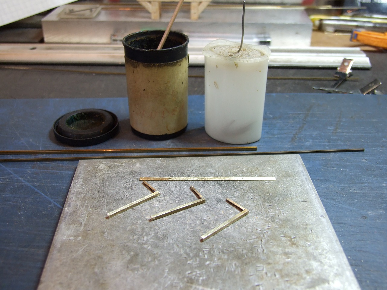 Pour les trois supports de la petite passerelle, j'ai utilisé du U de laiton de 2mm x 2mm + pour les jambes de force