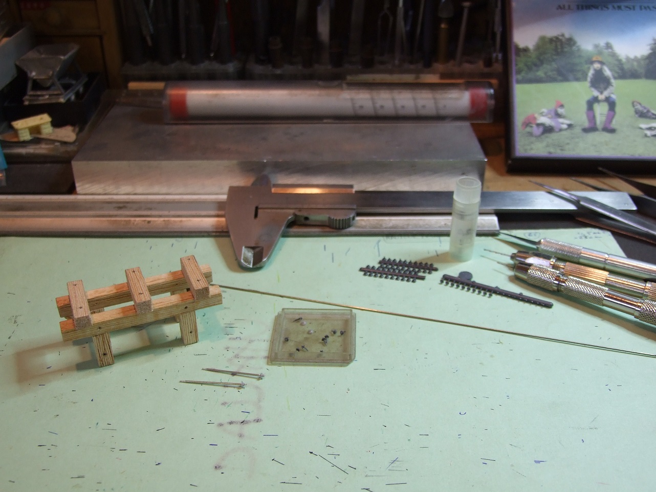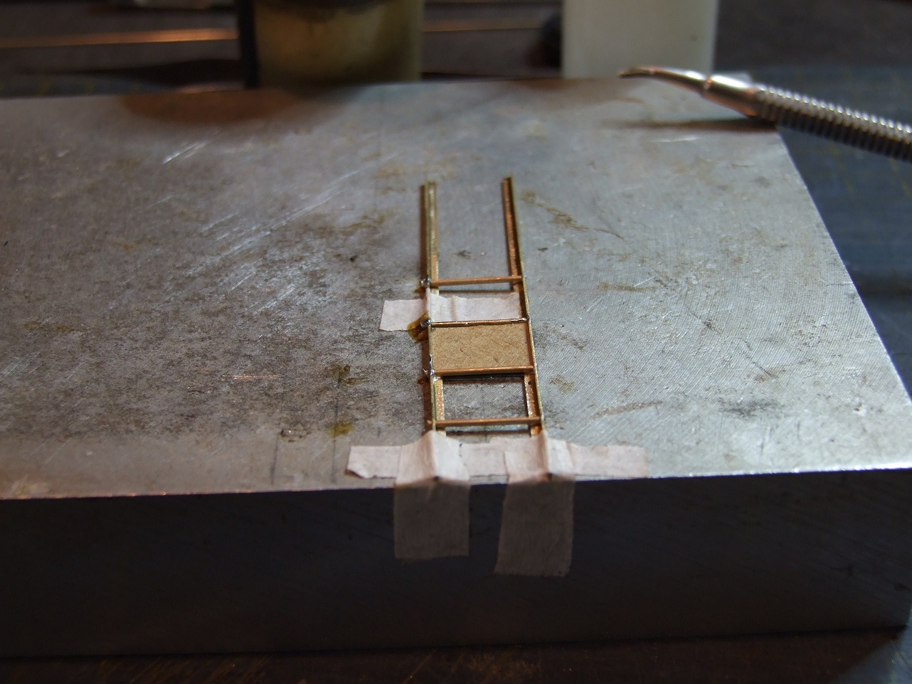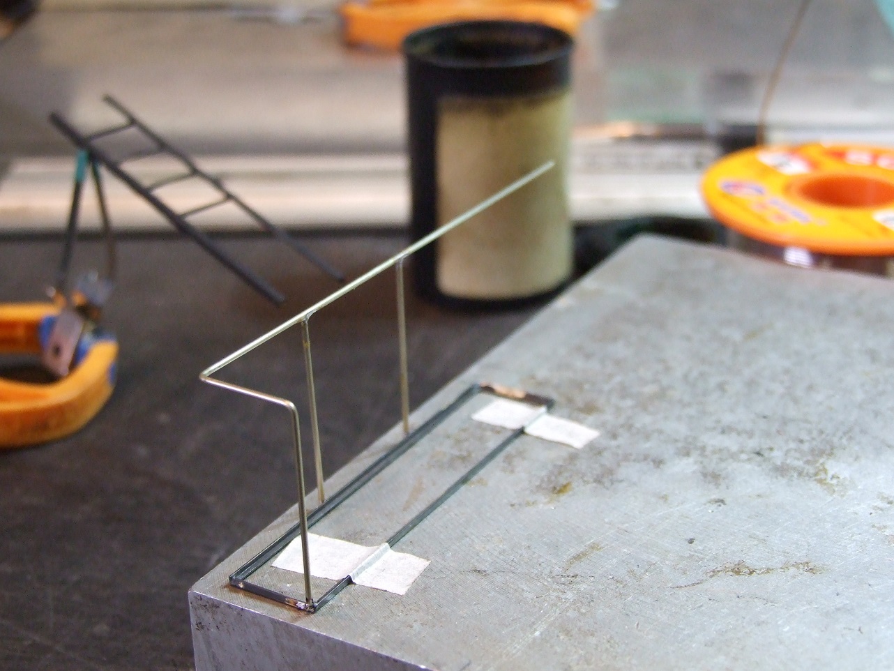 Pour les trois supports de la petite passerelle, j'ai utilisé du U de laiton de 2mm x 2mm + pour les jambes de force