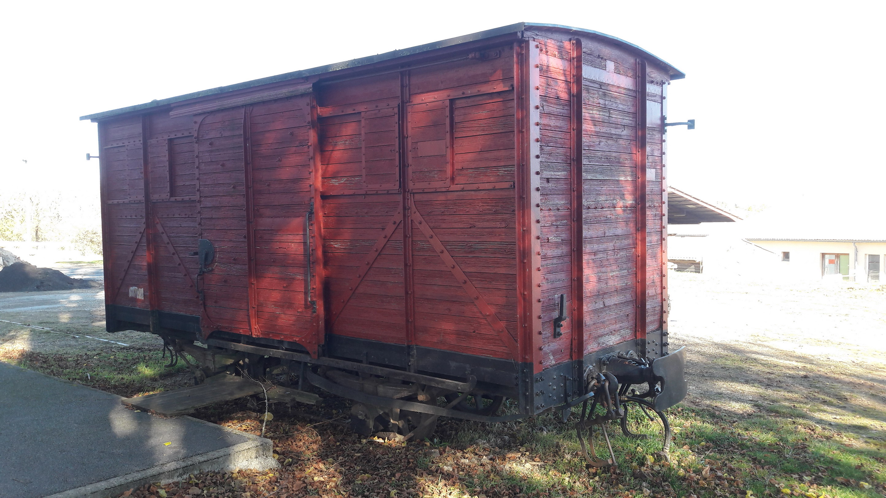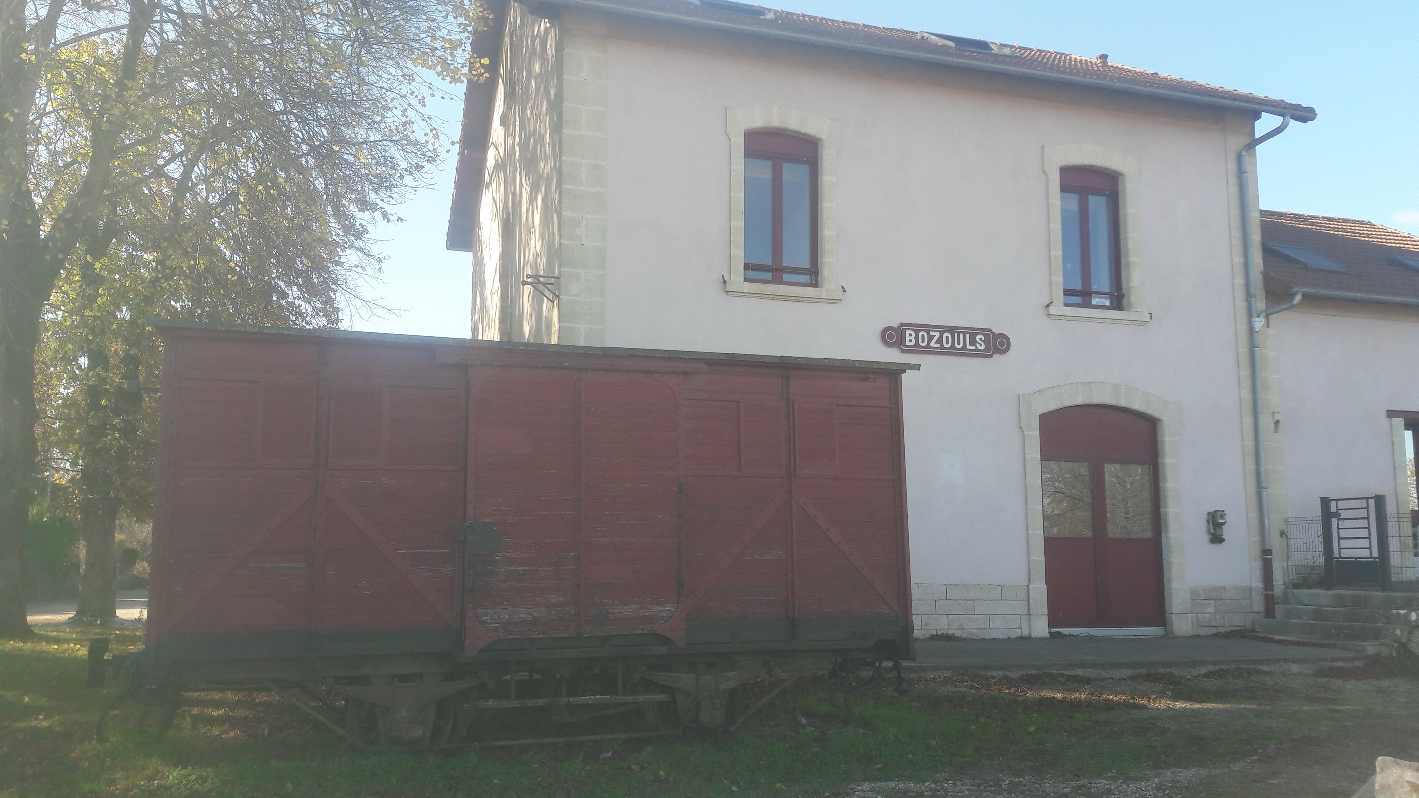 Quelle ne fut pas ma surprise de trouver en gare de Bozouls deux couverts à voie métrique ... Amusant puisqu'il reste une centaine de mètres de voie, dont les wagons posés sur un côté !
