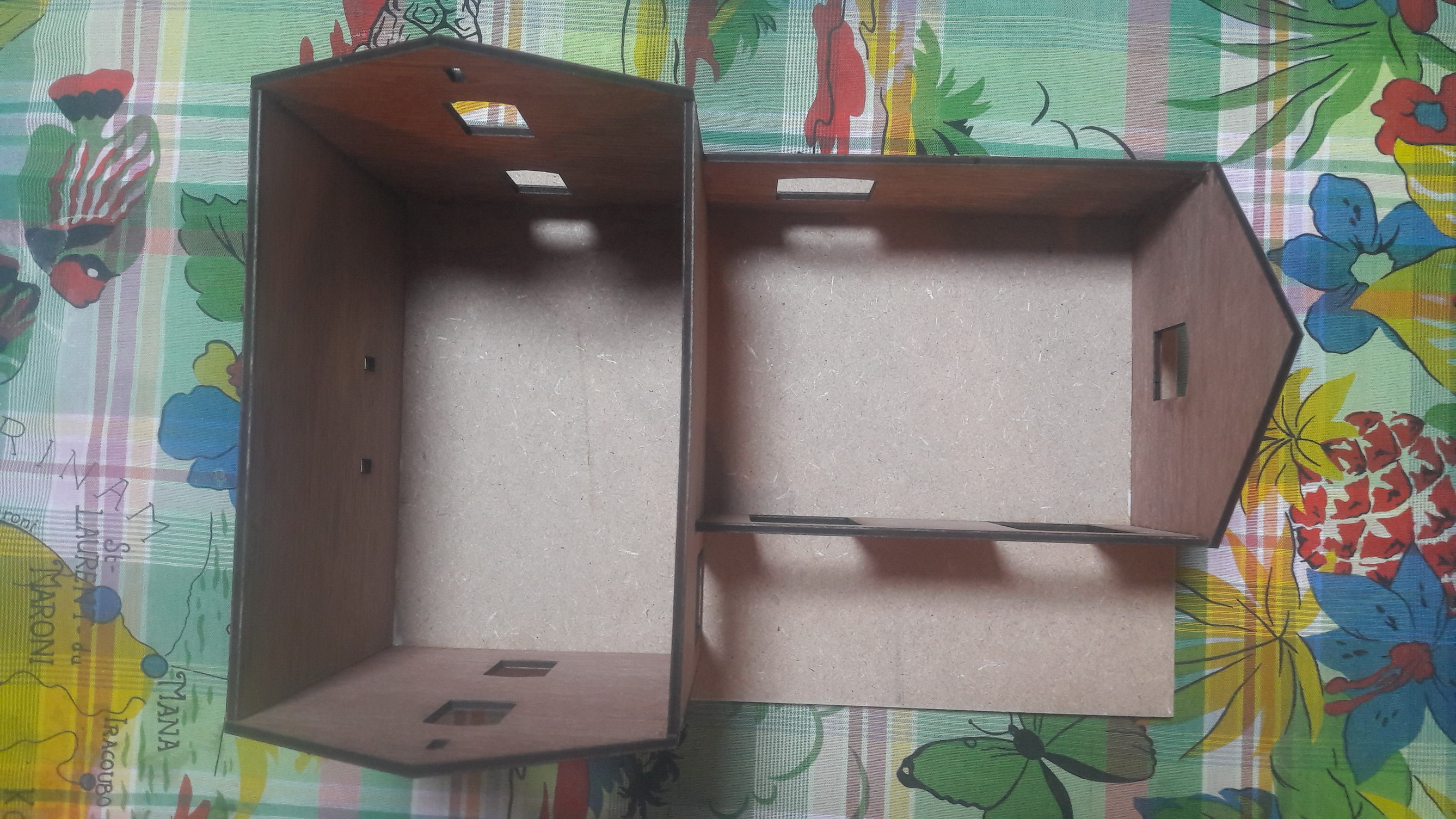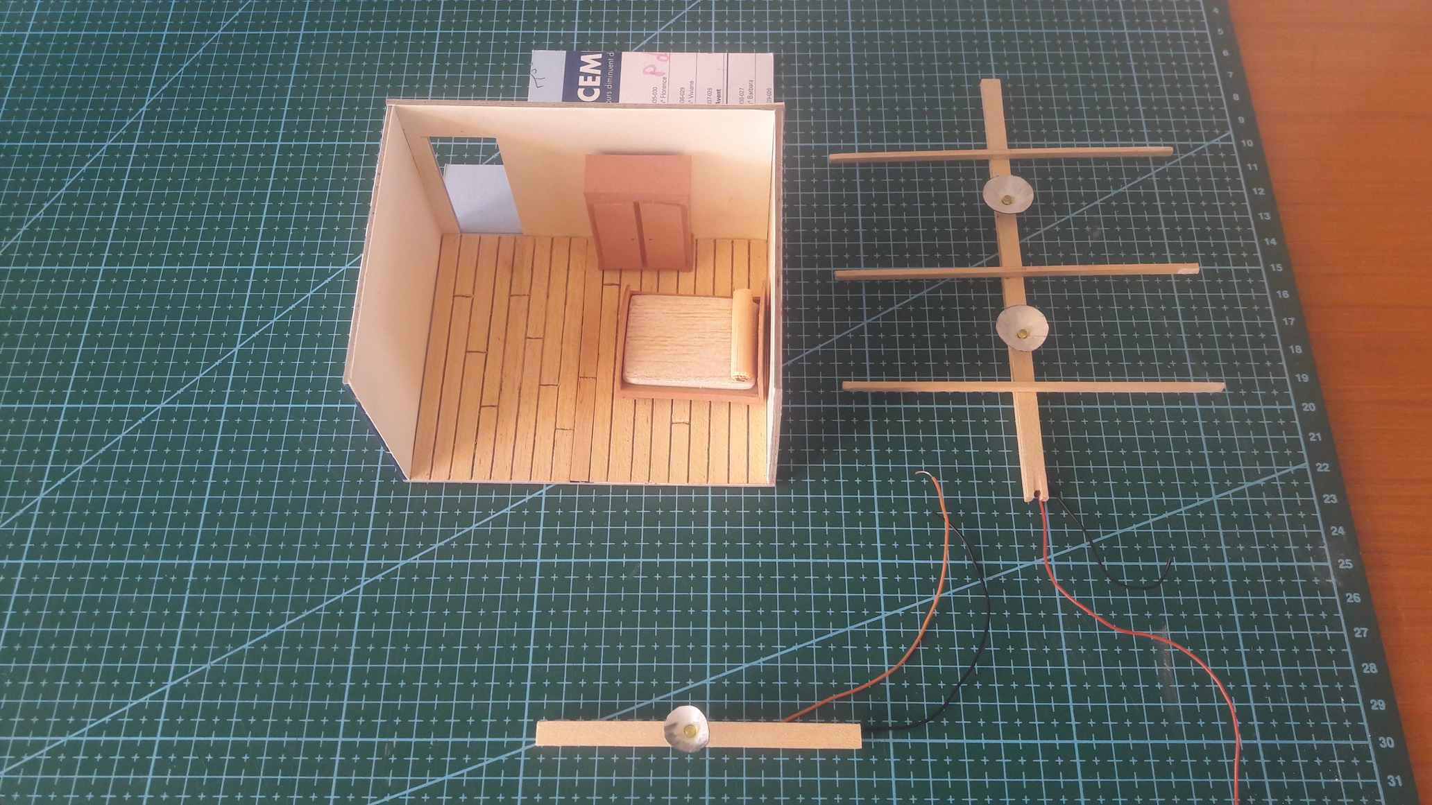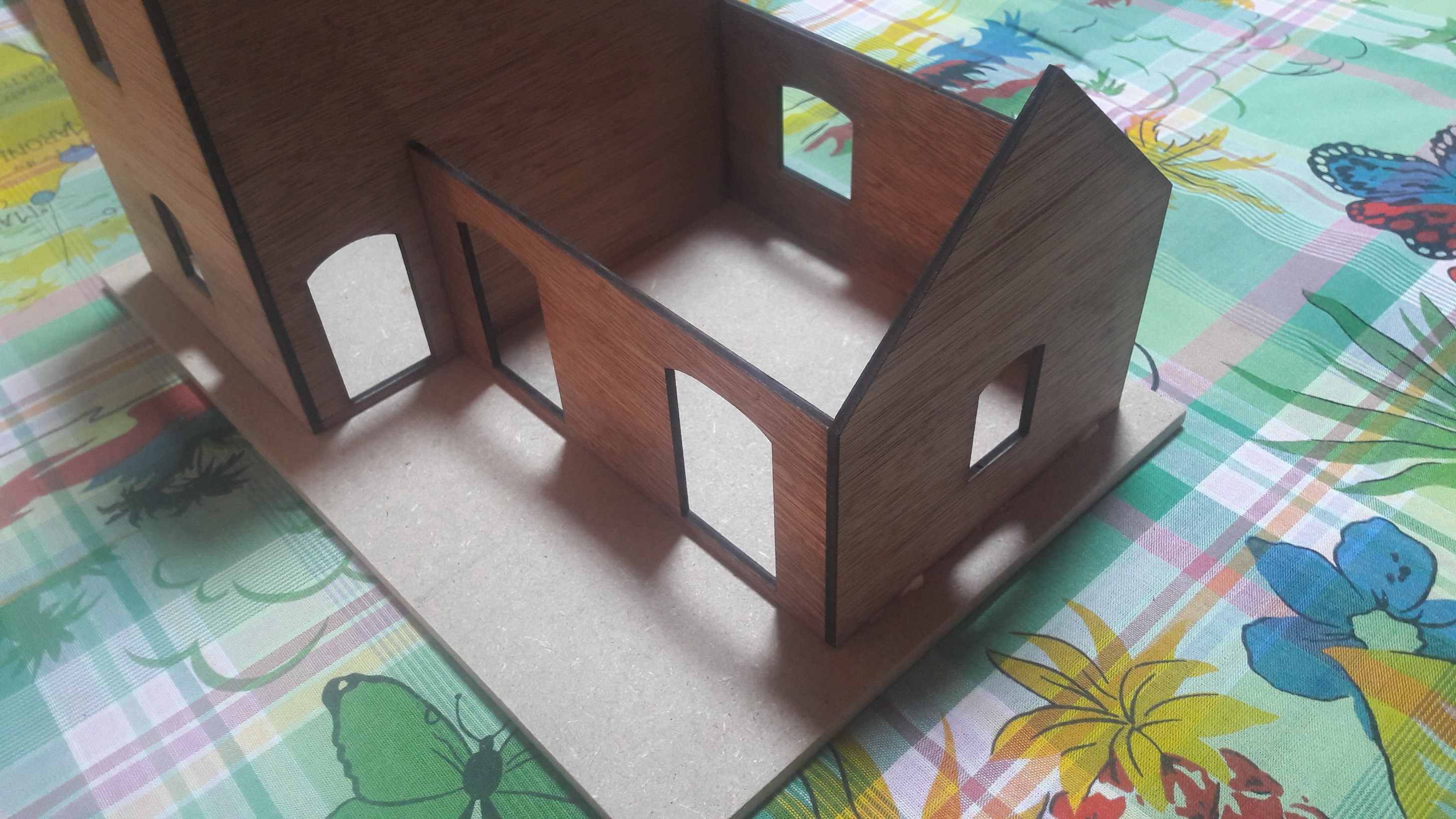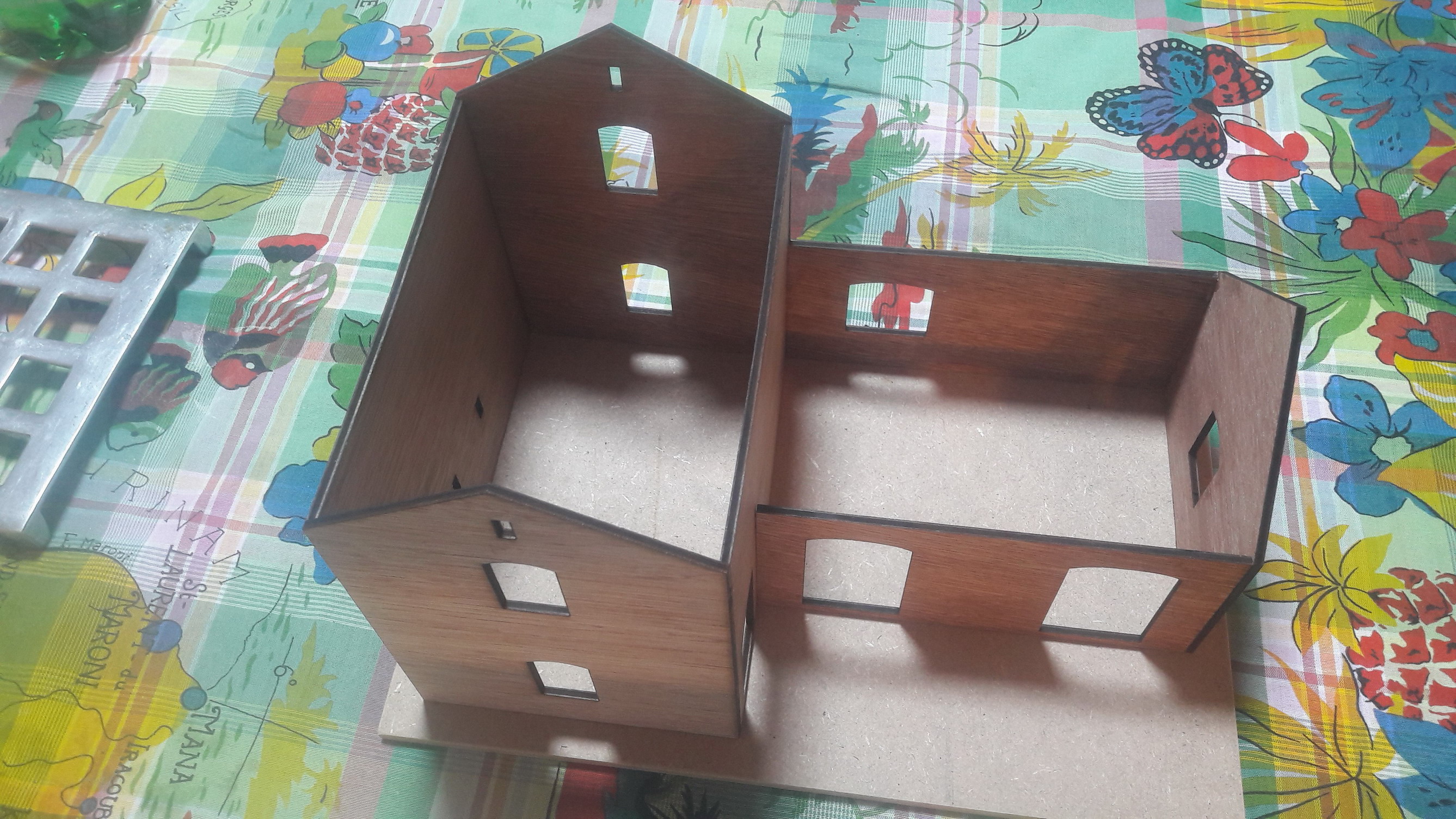 Les mesures ont été relevées sur zone puis les murs ont été dessinés avec Inscape en vue d'une découpe laser. J'ai trouvé des toits en ardoise sur un site ping-pong.