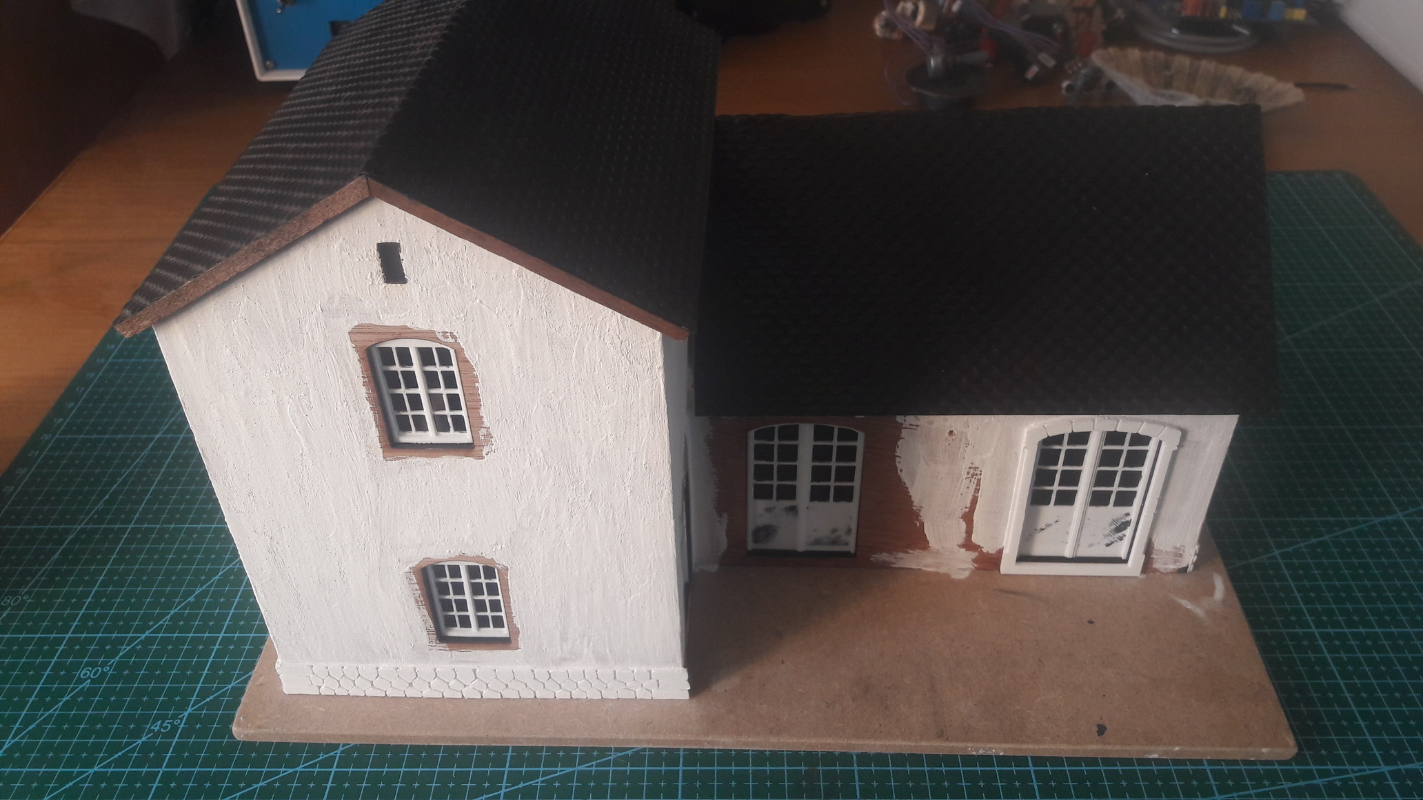 Ben vu mon statut SDF, squatteur chez un de mes fils (qui est parti pour me laisser mieux faire tous les travaux) et vu que j'en ai marre de tout laisser dans les cartons, j'ai décider de faire un petit diorama, entre 120 et 180 par 40, pour aussi faire un peu de décor.