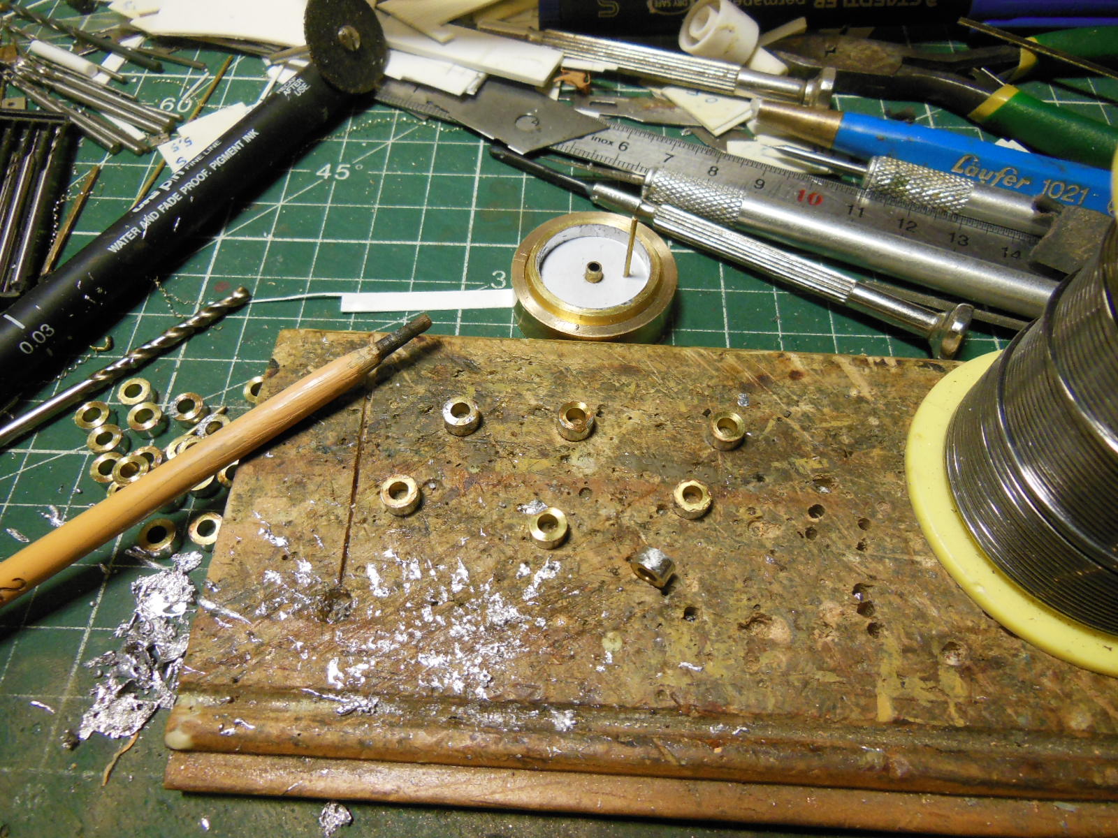 Ensuite le bord du trou de maneton est légèrement chanfreiné avec un foret 1.2 puis taraudé à M1.2.