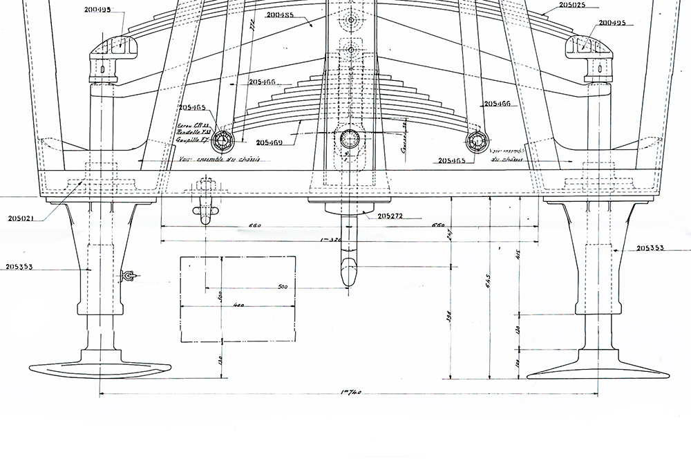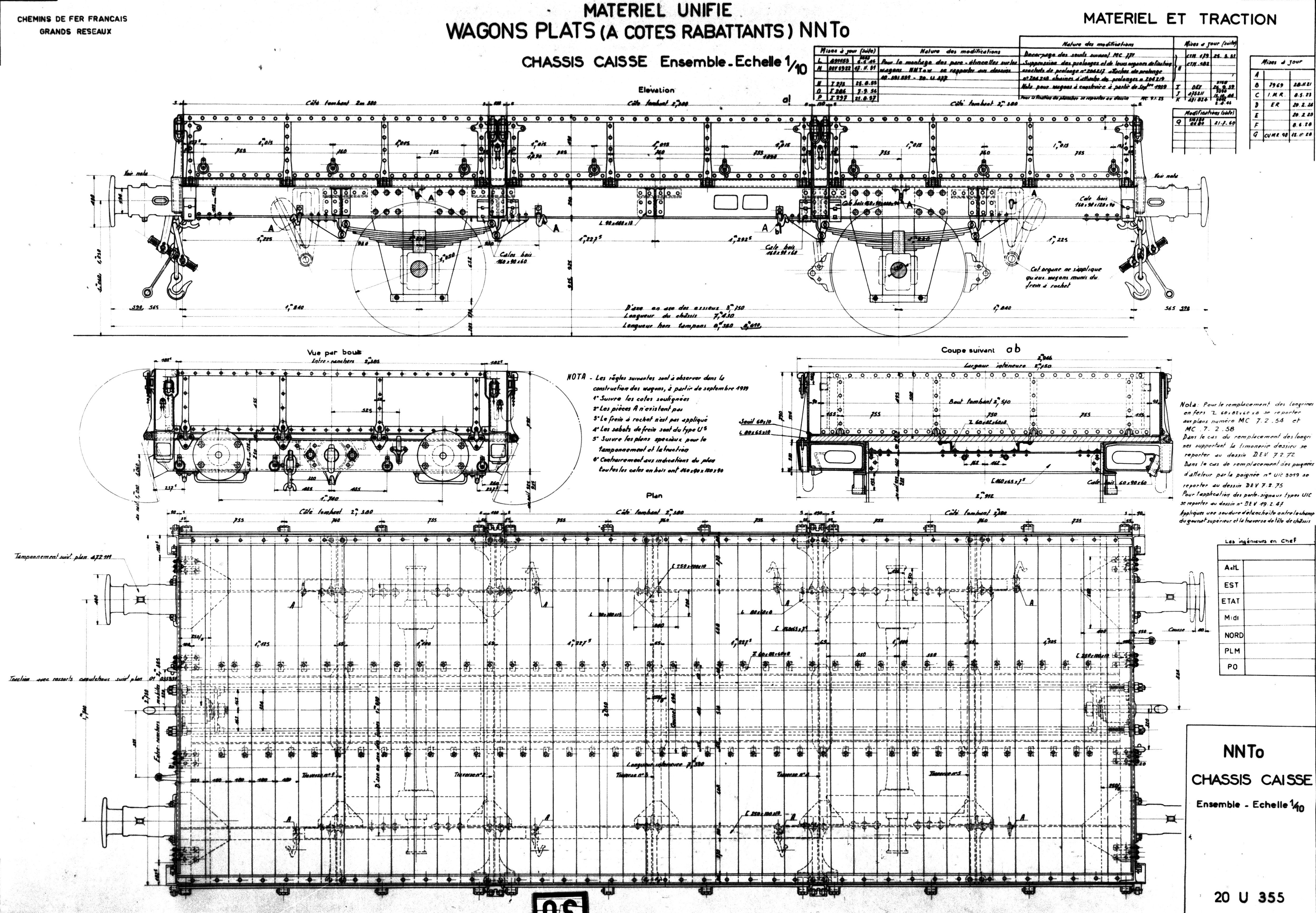 Quelques exemples de matériels anciens avec, pour illustrer, une photo et le dessin du tamponnement correspondant : dans l'ordre, une Pacific PLM, une C4D OCEM du PLM et un wagon plat OCEM du PLM. A chaque fois, les deux tampons sur une même extrémité sont identiques.
