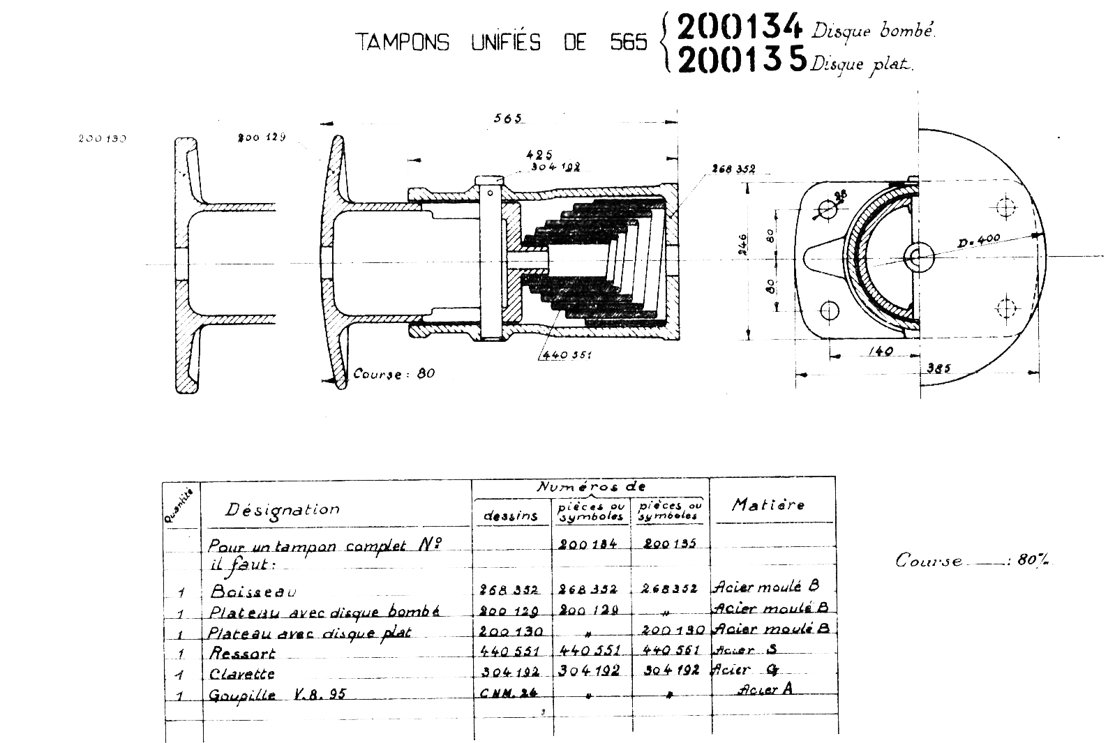 A propos de l'arrondi que l'on peut constater sur les tampons "plats", je suppose que la vie d'un tampon, choc après choc, jour après jour, année après année, déforme progressivement une pièce qui est vraisemblablement en acier forgé à plat (donc formée à chaud), et se tord (formage à froid), le centre, maintenu par la tige (en gros, un cylindre) cédant peu alors que les bords, libres, cèdent progressivement.