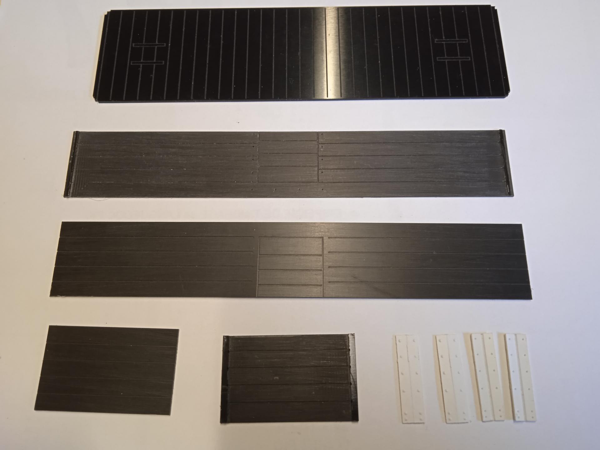 Ensuite il faut préparer 12 charnières correspondant aux cotés du tombereau et aux 2 portes latérales.