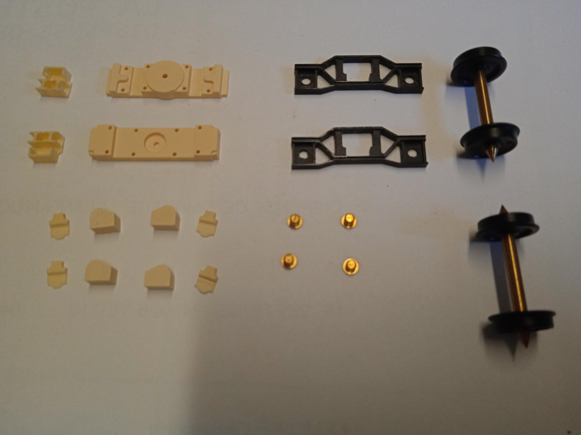 L'ensemble des pièces pour l'assemblage d'un bogie :