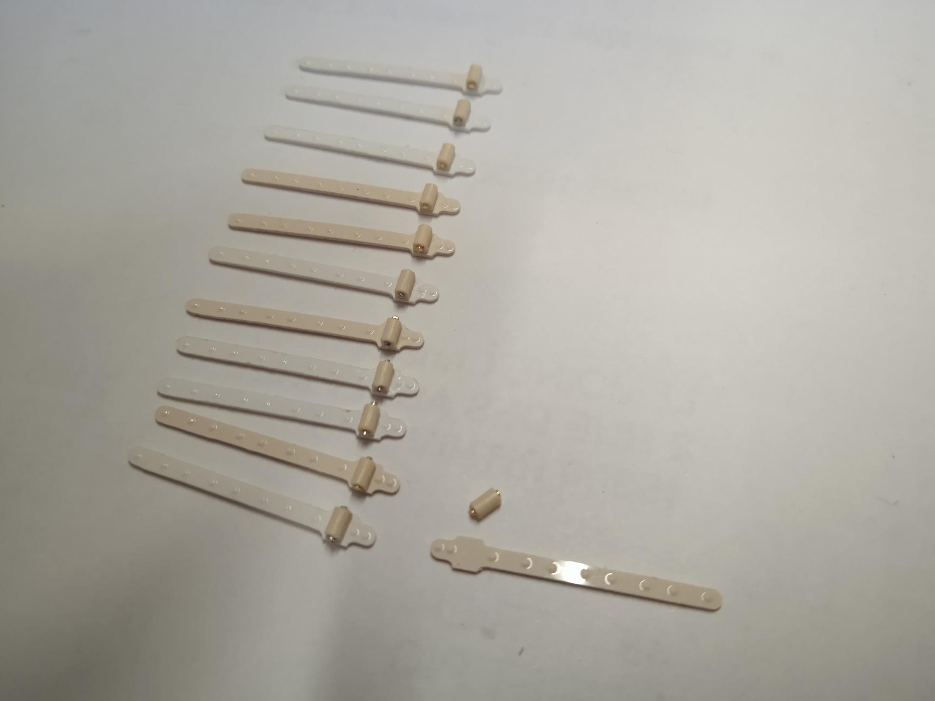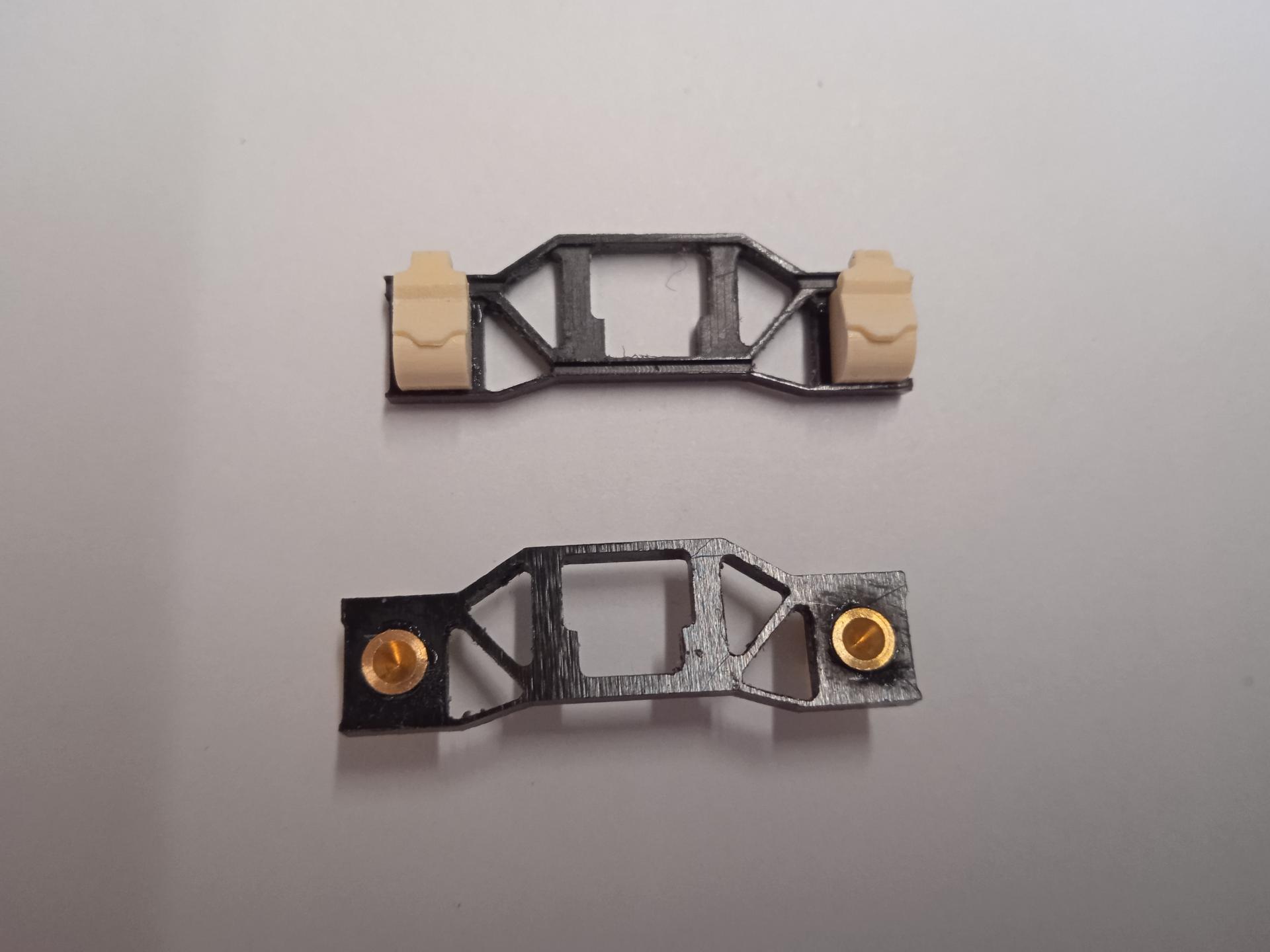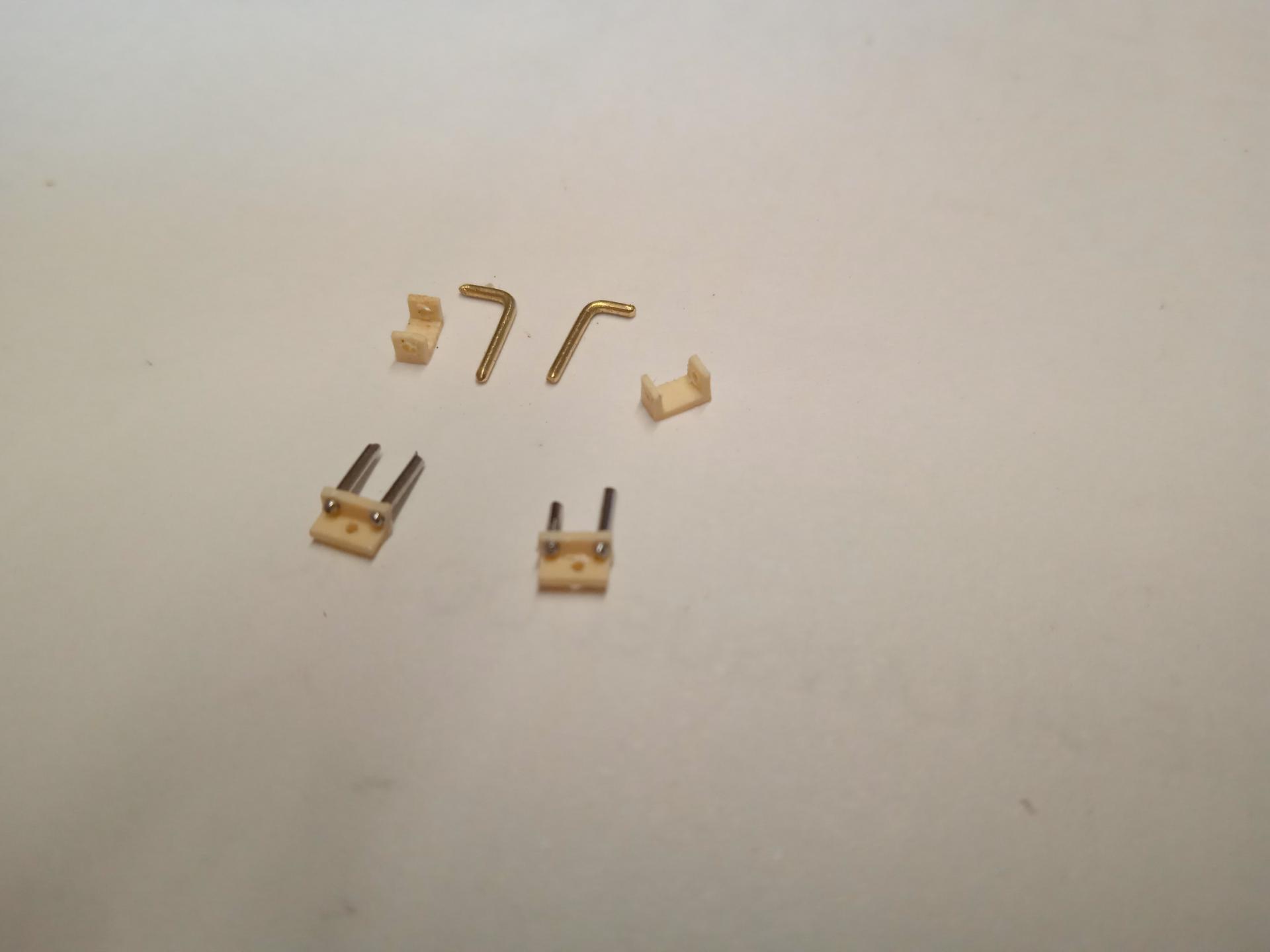 Il faut préparer pour chaque 4 petits morceaux de tube laiton de 0.8mm, et insérer l'ensemble dans le châssis.