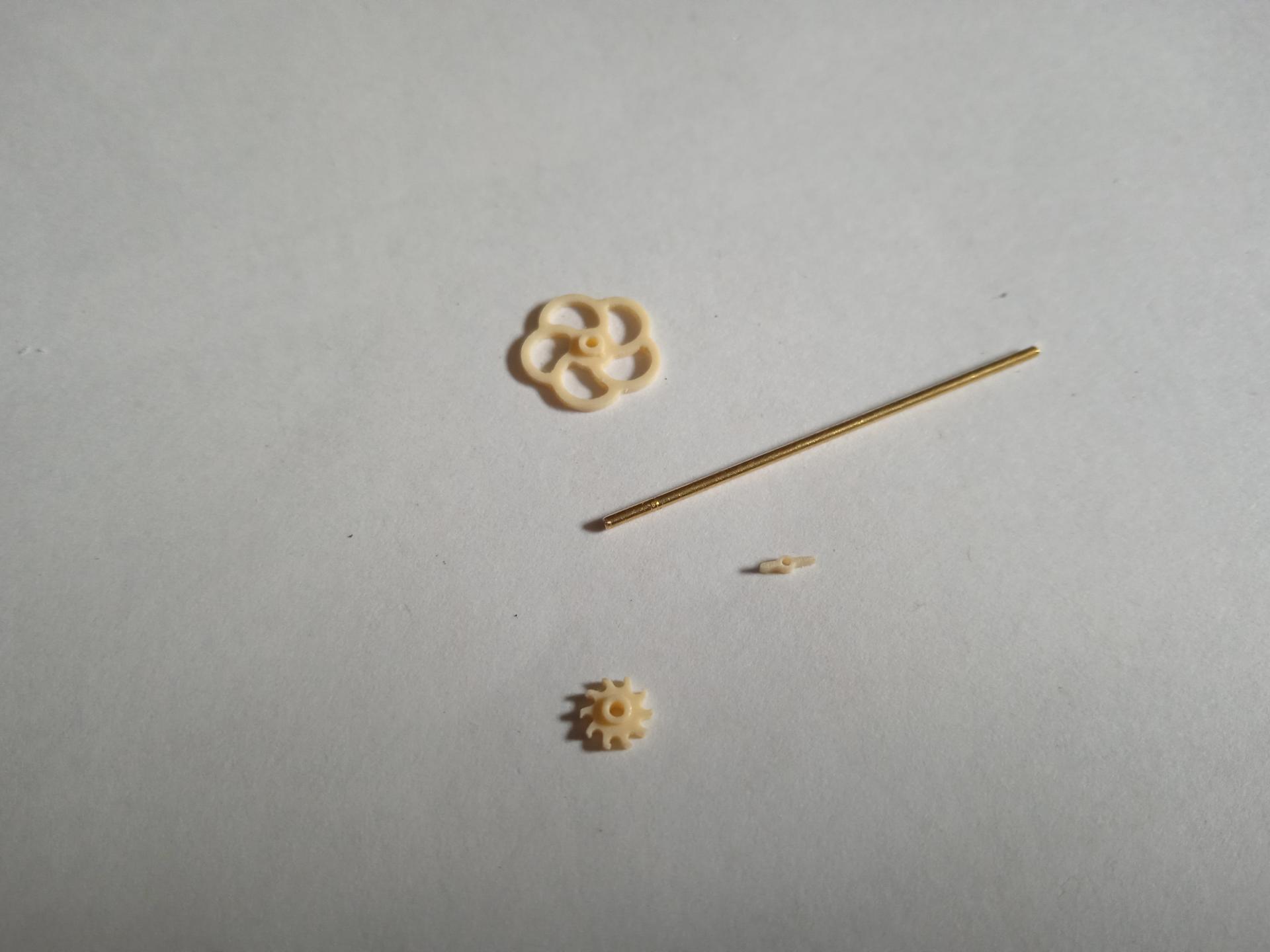 Le volant et la roue sont collés sur un tube laiton de 0.8mm.