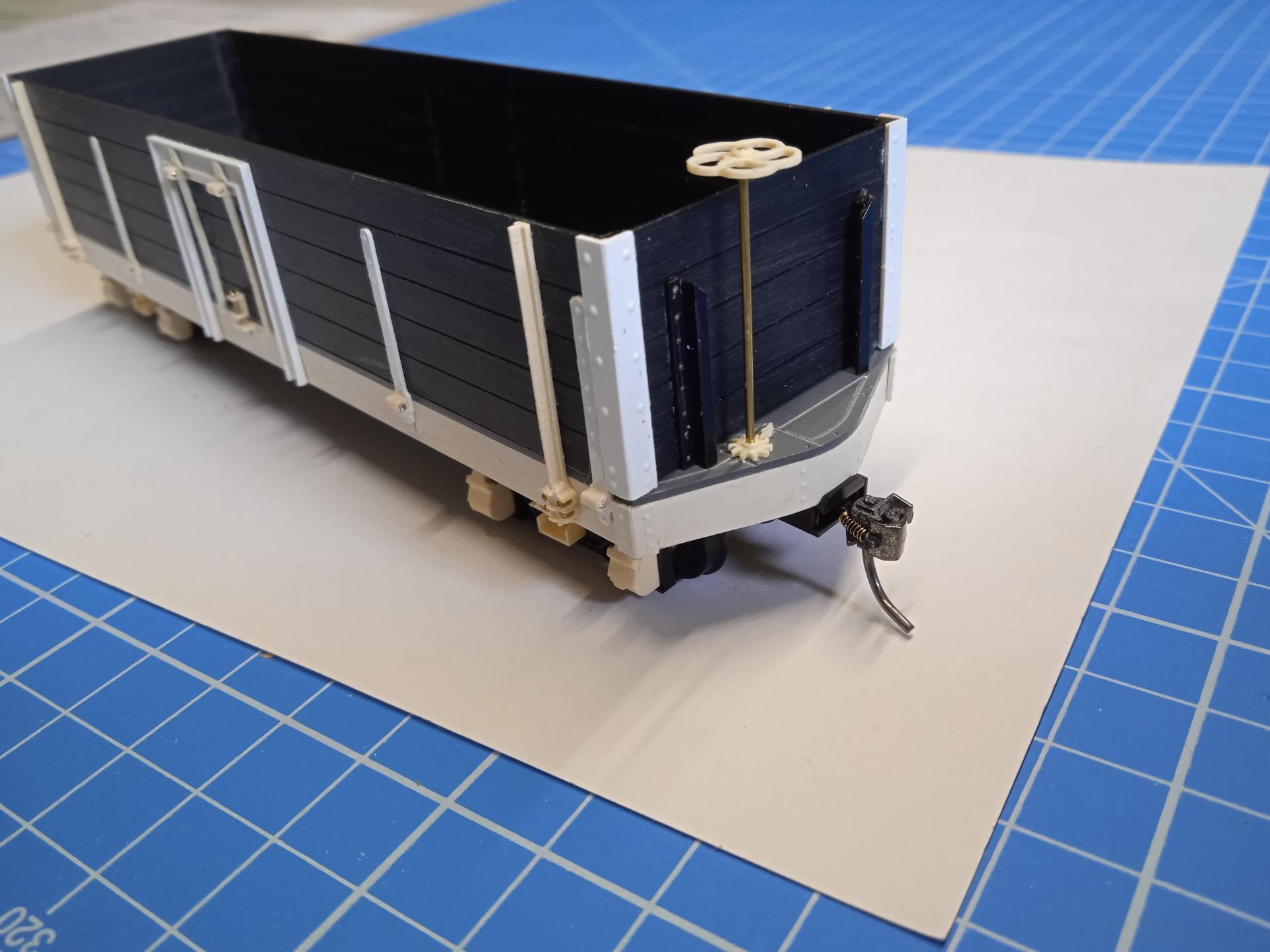 Voilà l'ensemble du wagon assemblé, avec des attelages Kadee N°5 (présents également dans le kit).