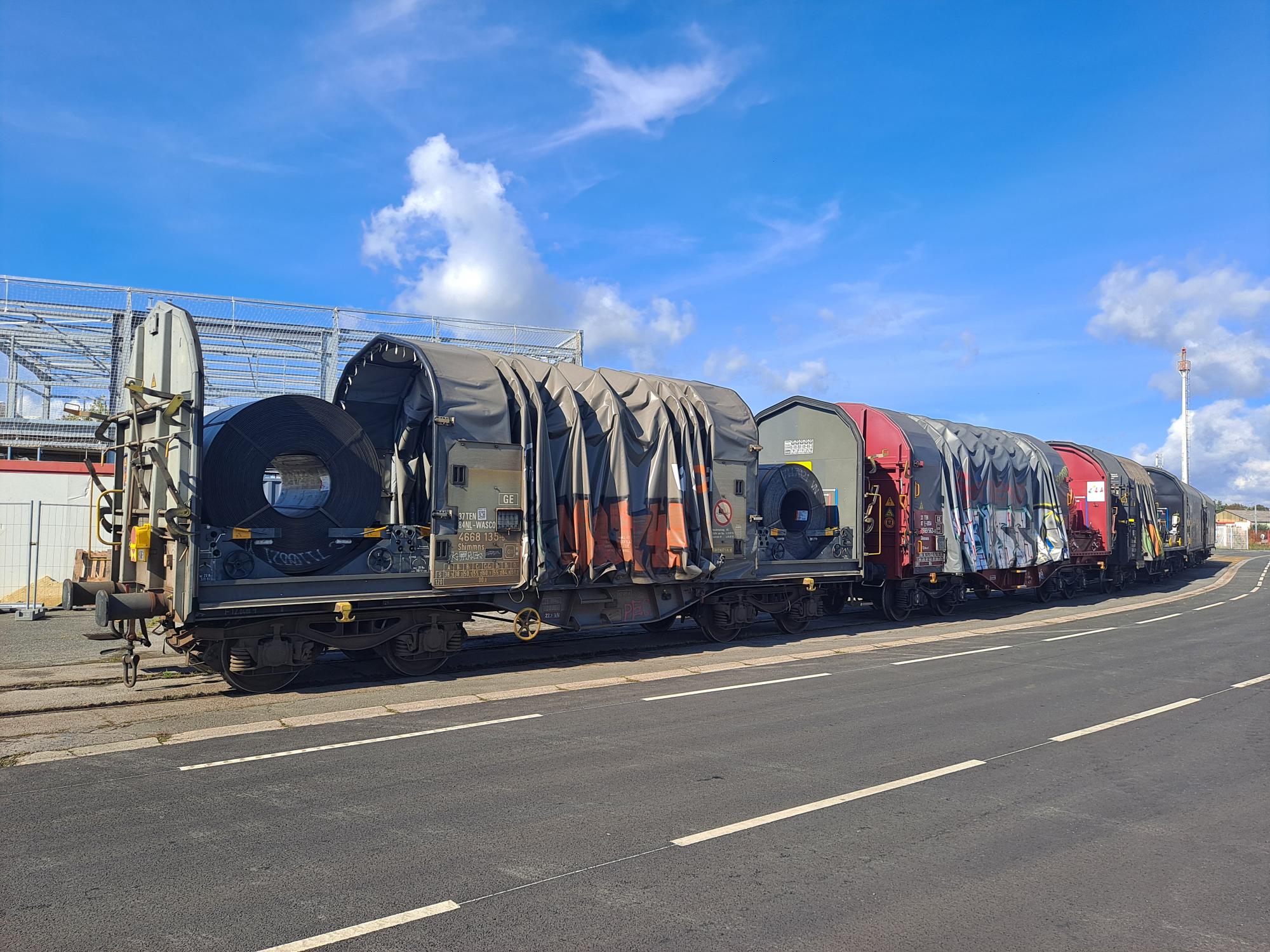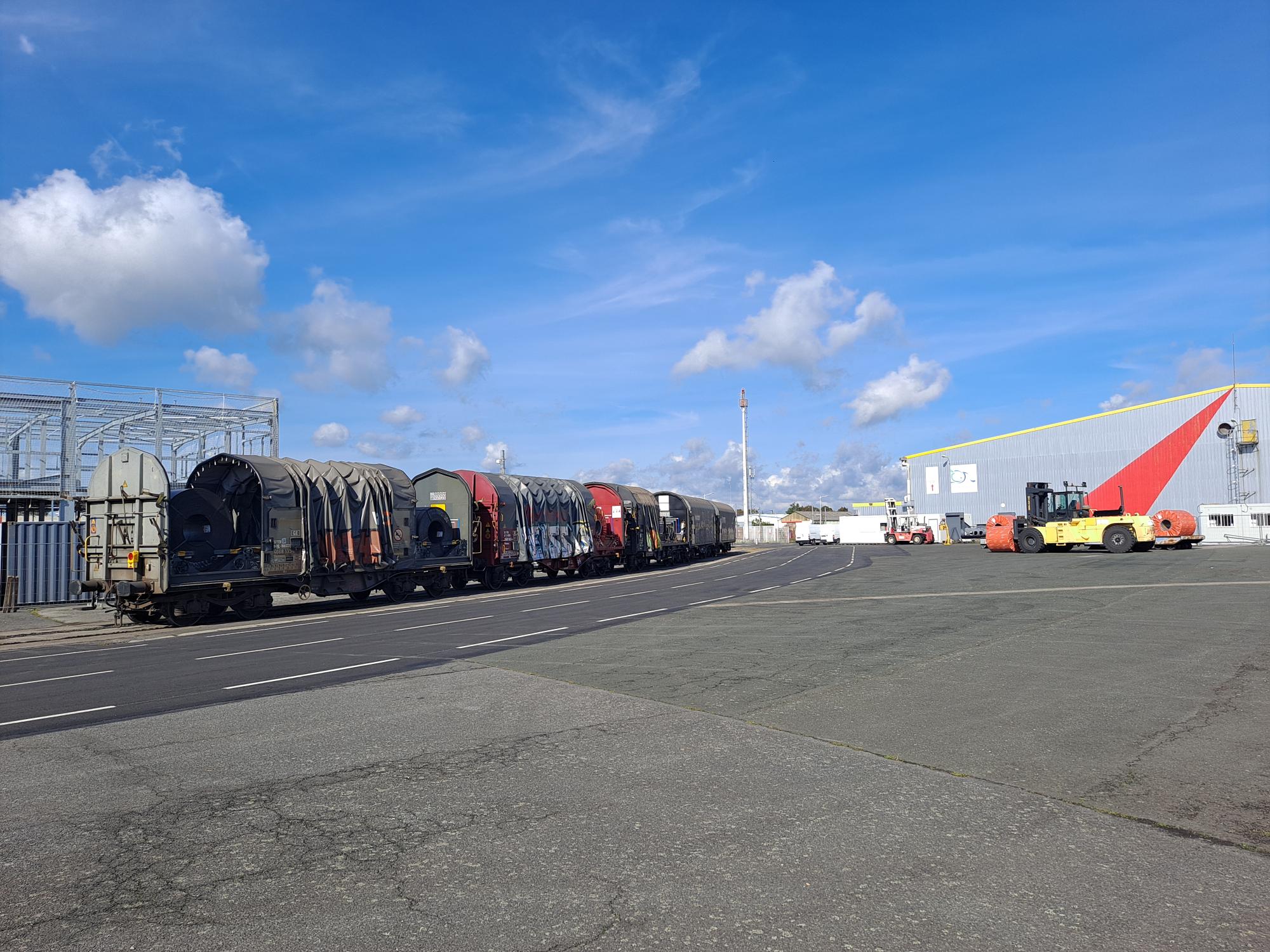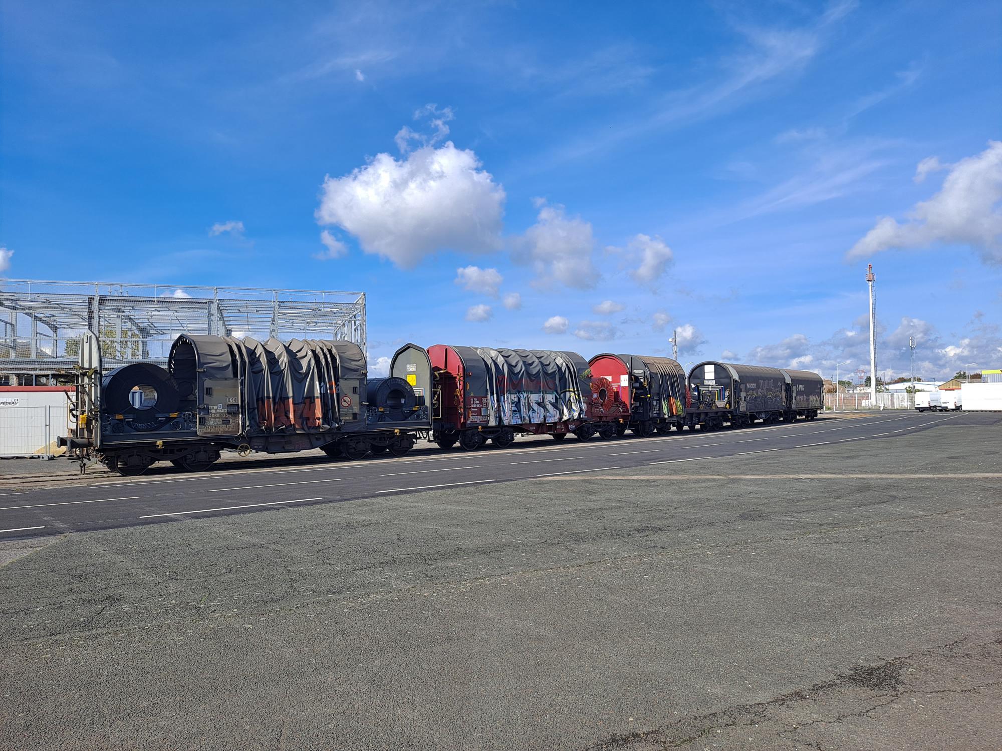 La voie d'accès directe à l'usine étant en réfection, le quai est utilisé comme voie de débord pour décharger les coils sur des roll pour finir le trajet vers l'usine ARCELOR.